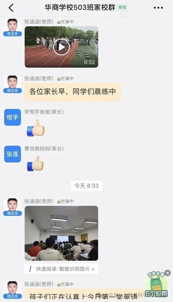 9 月 10 日,恰逢教师节,学校各年级线上家长会同步顺利开展,这场特殊的 “云端之约”,成为连接学校与新生家庭的重要纽带。针对新生家长最关心的校园管理与教学规划,班主任们做了细致入微的分享。在规章制度讲解环节,每一项都结合实际了实际案例讲解,避免生硬说教。这场线上家长会,不仅让新生家长全面了解学校情况,更拉近了家校距离,为后续协同育人奠定了坚实基础。通过两周的家校沟通,班主任们认真的工作态度也收获了家长的好评反馈。